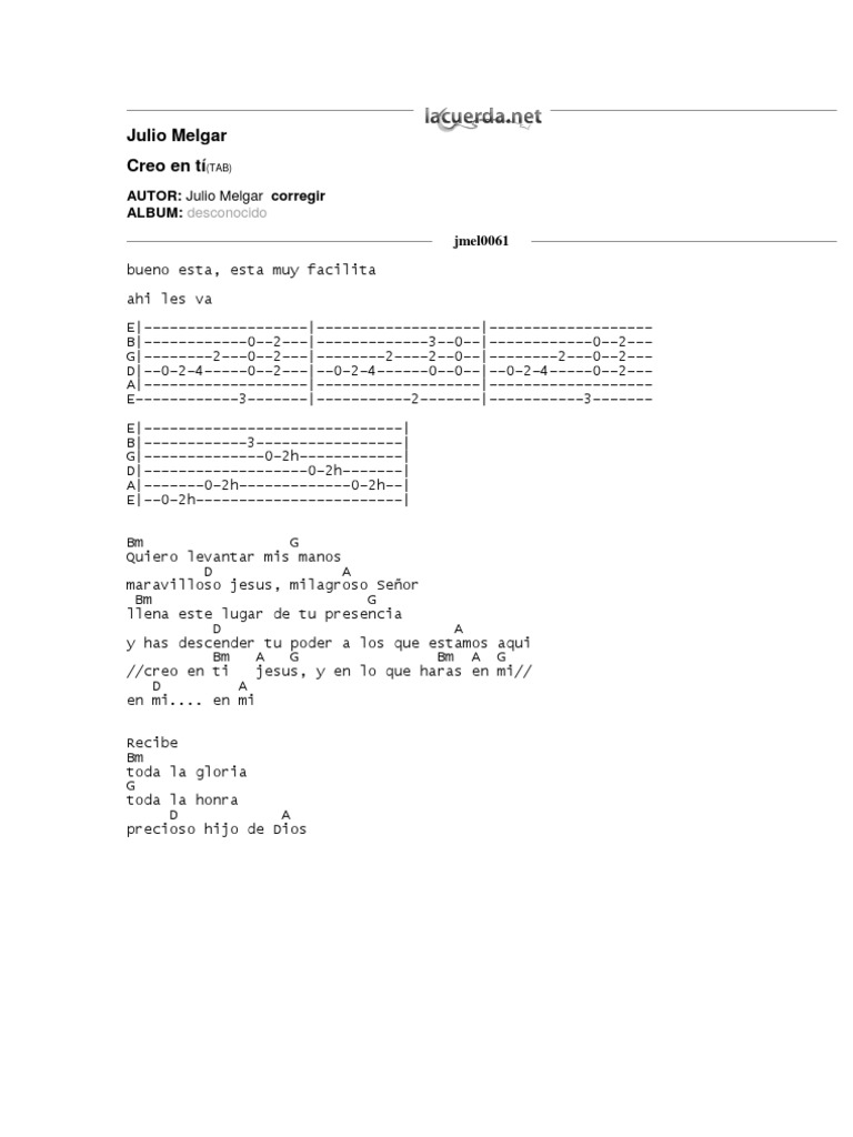 Creo En Ti Julio Melgar Acordes Piano : Letras, acordes y tabs para guitarra, bajo y ukulele.