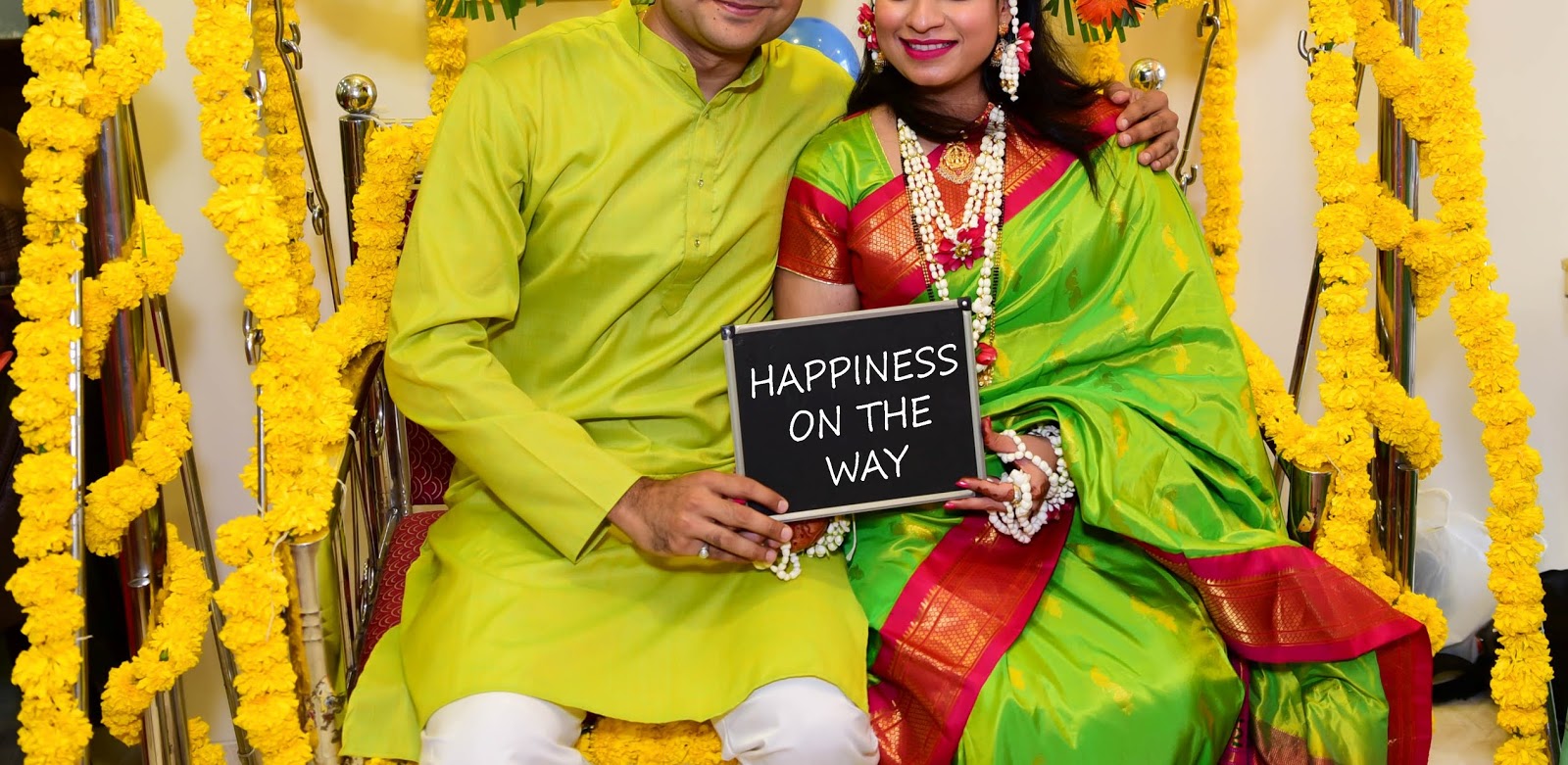 Dohale Jevan Green Saree For Baby Shower : Maharashtrian dohale jevan decoration ideas at home.