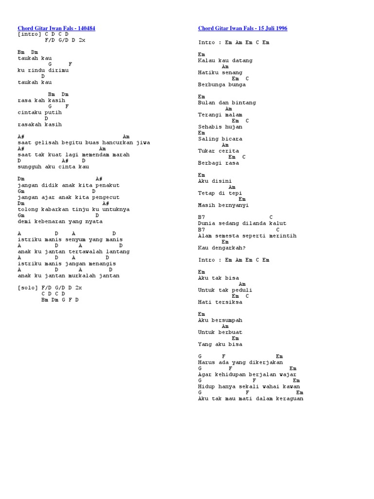 Seorang Anak Kecil Bertubuh Dekil Chord : Chord iwan fals sore tugu pancoran intro :